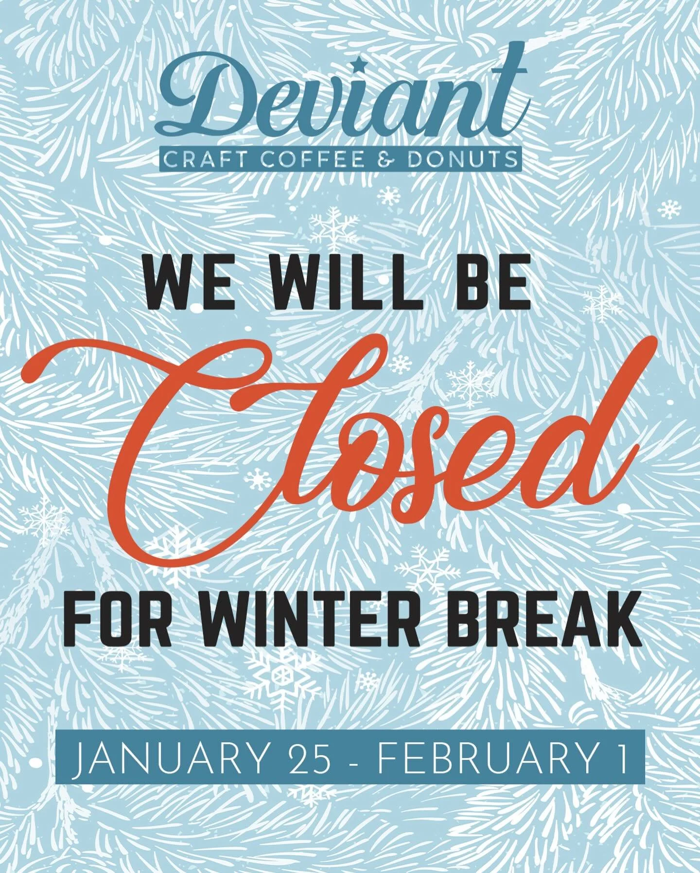 DEVIANT IS CLOSED FOR WINTER BREAK JANUARY 25 - FEBRUARY 1. WE WILL SEE YOU BACK ON MONDAY, FEBRUARY 2!